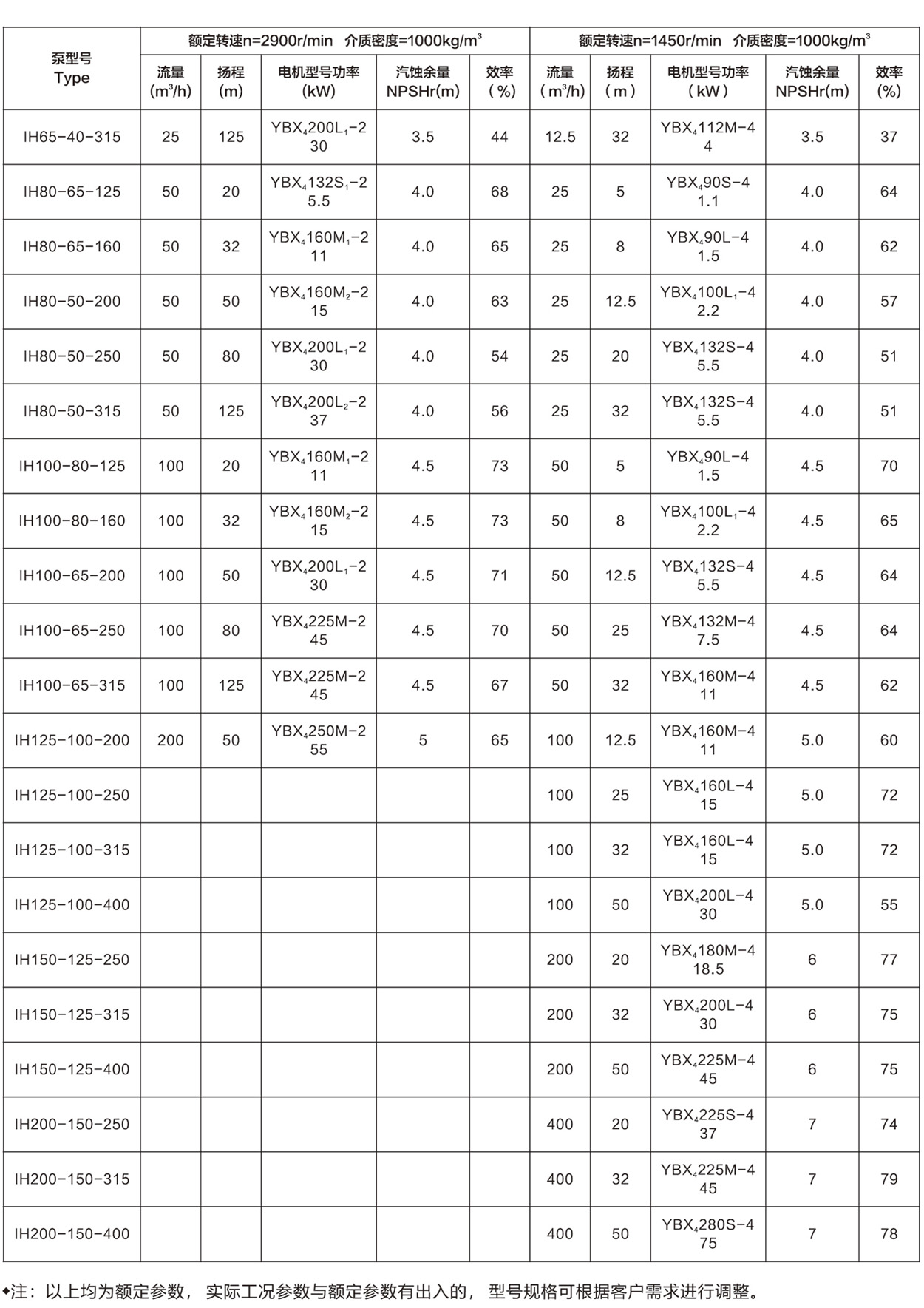 IH型泵通用性廣,全系列工140種規(guī)格,但只用四種軸;同一規(guī)格軸,軸承、軸封、葉輪緊固件等均能互換。